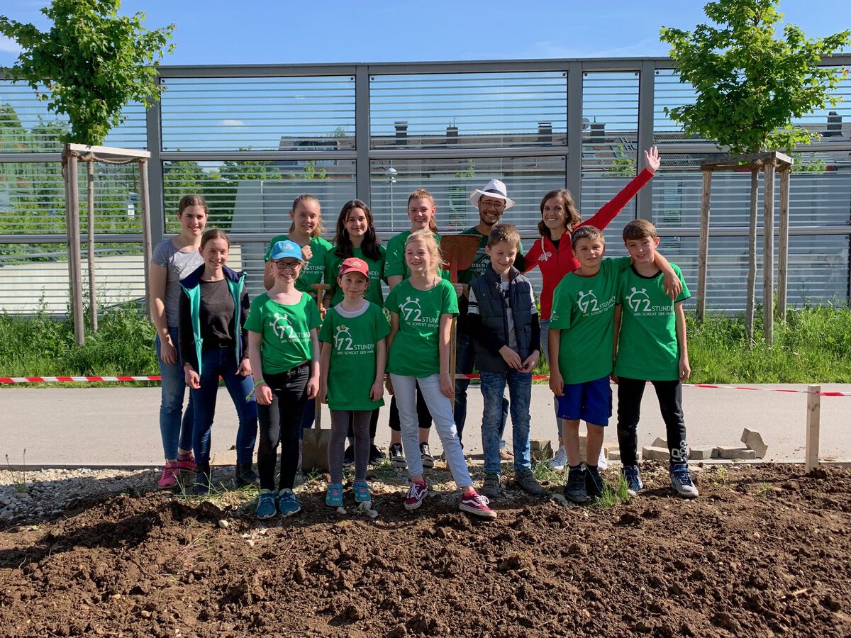 Beschreibung: Ganz nach dem Motto „In 72 Stunden die Welt besser machen“ stellen sich die Schüler, Lehrerinnen, Betreuer und Eltern der Silva-Grundschule in Krichheim der Herausforderung, in 72 Stunden ein gemeinnützige soziale, ökologische Projekt umzusetzen. Knapp 50 Freiwillige schnappen sich Handschuhe, Schaufeln, Gartenschere, Eimer, Schubkarre und bringen den Schulgarten wieder auf Vordermann. Die To-Do Liste ist lang: Pergola abschleifen und lackieren, Hochbette aufstellen und bepflanzen, Gartenzaun wieder hübsch machen und ein Insektenhotel soll auch noch gebaut werden! Na dann mal los – die 72 Stunden laufen!