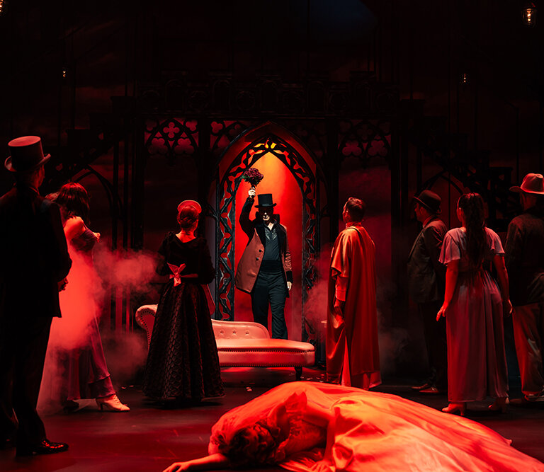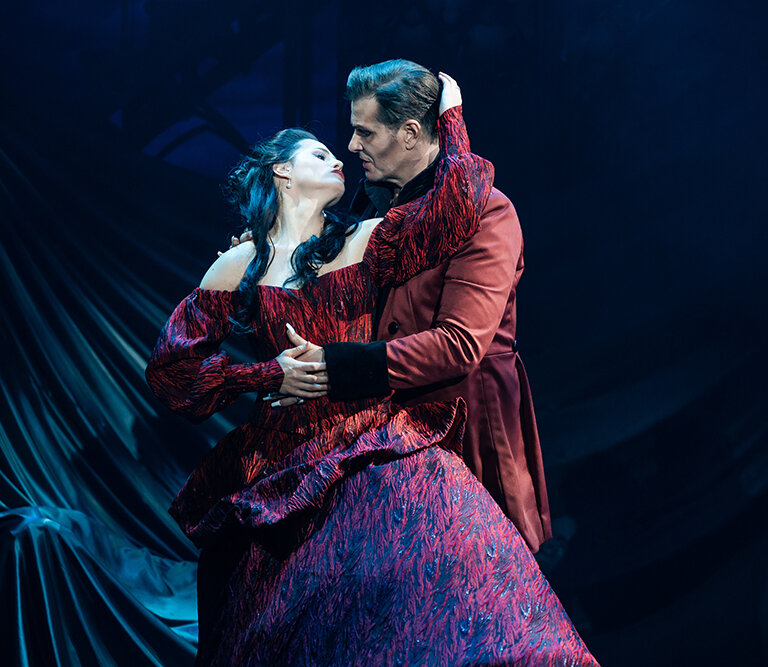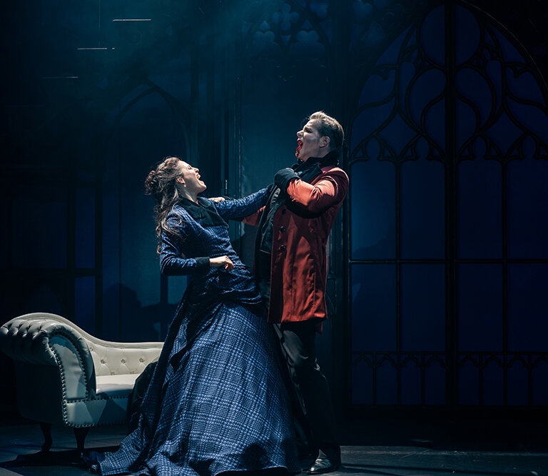 Für den jungen Anwalt Jonathan Harker wird eine Geschäftsreise zum Albtraum: Graf Dracula lädt ihn nach Transsilvanien ein, um ein Anwesen in London zu erwerben. Doch als der Vampir das Porträt von Jonathans Verlobter Mina entdeckt, verfällt er in eine gefährliche Faszination und das Schicksal nimmt eine unheilvolle Wendung. Dracula verlässt sein Schloss in Transsilvanien, um Mina in London zu finden – und hinterlässt eine Spur aus Blut, Sehnsucht und Verzweiflung. Selbst der legendäre Vampirjäger Van Helsing scheint machtlos gegen diese dunkle Leidenschaft. Im Schatten der Nacht entscheidet sich Minas Schicksal: Wählt sie das Licht – oder das ewige Leben an Draculas Seite? Wird das Publikum Draculas Ruf folgen und sich in die Dunkelheit verlieben?
