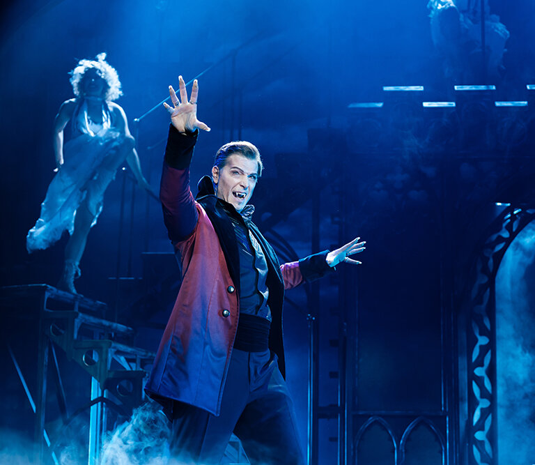 Das Publikum darf sich in DRACULA – Das Musical auf niemand Geringeren als Musicalstar Jan Ammann freuen, der als Fürst der Finsternis unseren Theatersaal heimsuchen wird – Herzklopfen und Gänsehaut garantiert! Berührende Balladen sowie kraftvolle Rocksongs aus der Feder von Star-Komponist Frank Wildhorn werden von einer 8-köpfigen Live-Band gespielt. Spektakuläre Bilder in viktorianischem Bühnenbild, stimmungsvolles Licht-Design und schaurig-schöne Kostüme untermalen unter der Regie von Alex Balga die ewige Jagd nach Blut und Liebe und machen dieses aufregende Musicalerlebnis unvergesslich.