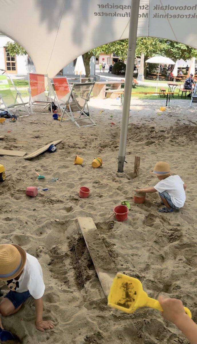 Hunger? Direkt neben der Indoorhalle gibt es auch ein kleines Café und das Restaurant neben den Spielplätzen draußen ist auch schon komplett geöffnet.