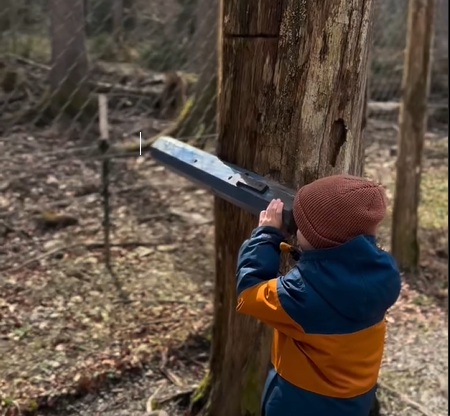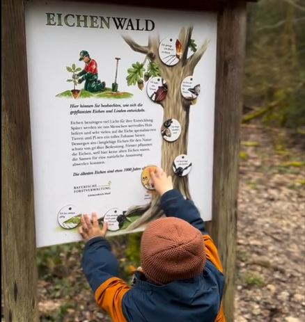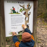 Den Zettel zur kostenlose Waldrallye für die große Runde (wo ihr zum Schluss auch den Tresor knacken könnt) holt ihr euch am Holzhaus - wenn ihr vor dem Zentrum steht rechts davor. Der Tresor befindet sich dann kurz vorm Kiosk im Holzpilz.Oder ihr habt nicht so lange Zeit und macht nur einen Abstecher zum Wildschweingehege mit dem kleineren Rundweg. Der Pfad der Sinne besteht aus 5 Stationen, die nicht nur barrierefrei geeignet ist, die Tafeln sind sogar mit Blindenschrift versehen.