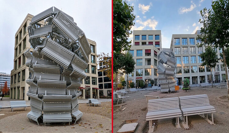 Über 50 Sitzbänke: Neue Brunnenskulptur in Schwabing