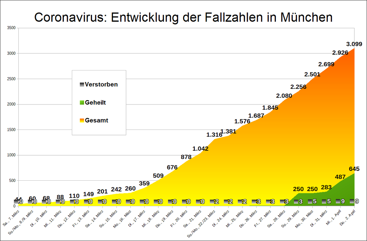 Update 2.4.: Entwicklung der Coronavirus-Fälle in München