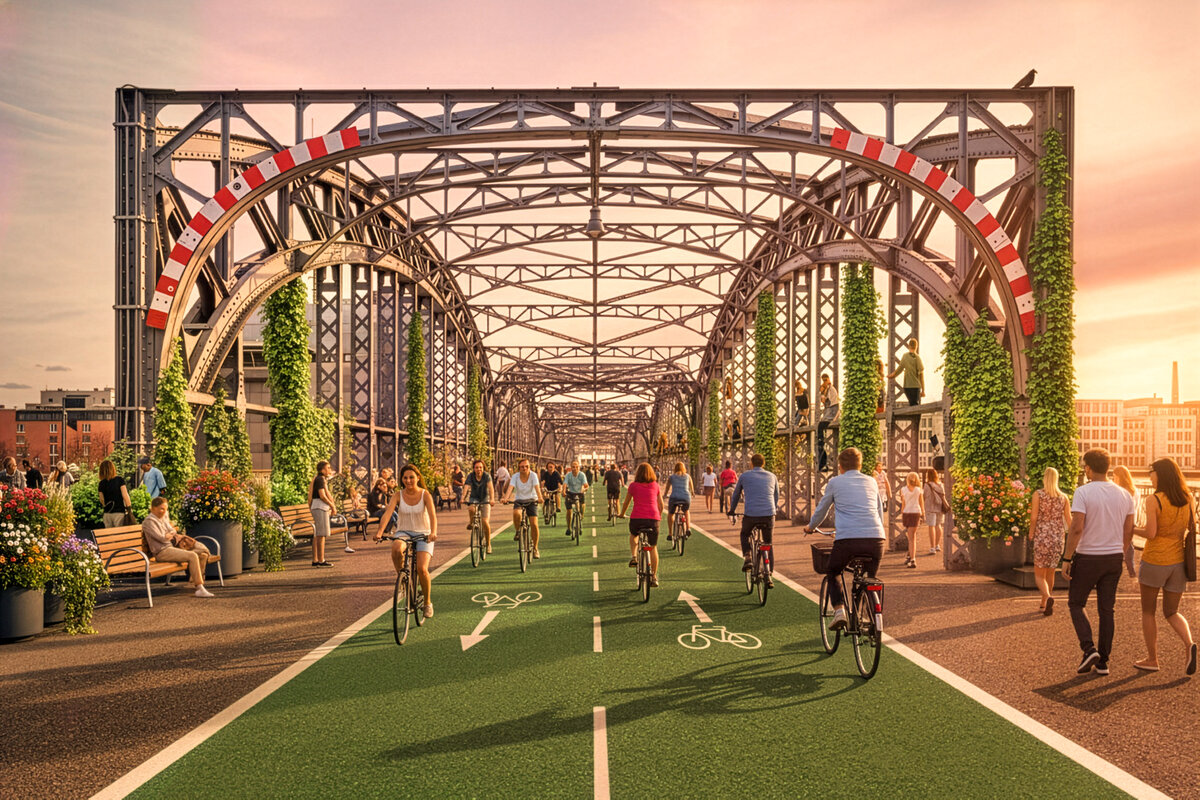 Wie könnte die Hackerbrücke aussehen, wenn dort keine Autos mehr fahren? Im Rahmen einer Demonstration für eine autofreie Hackerbrücke wird heute Abend ein entsprechendes Bild auf eine große Leinwand projiziert. Die Aktion soll zeigen, wie die Brücke wirken könnte, wenn Autos wegfallen.