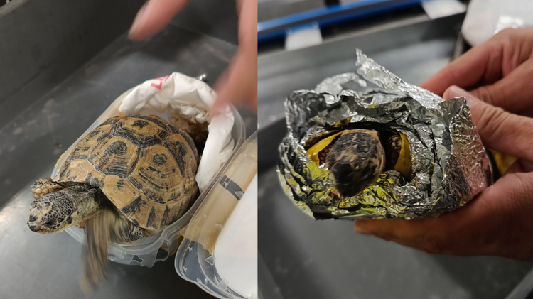 Mann schmuggelt lebendige Schildkröten mit Klebeband