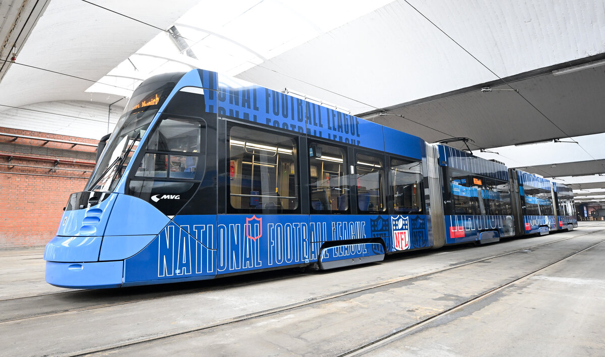 Ein bisschen Superbowl–Stimmung ist seit heute in der Stadt unterwegs, denn eine Tram ist mit buntem NFL-Design gestaltet.