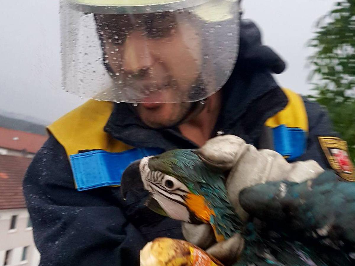 Papagei aus Baumkrone gerettet
