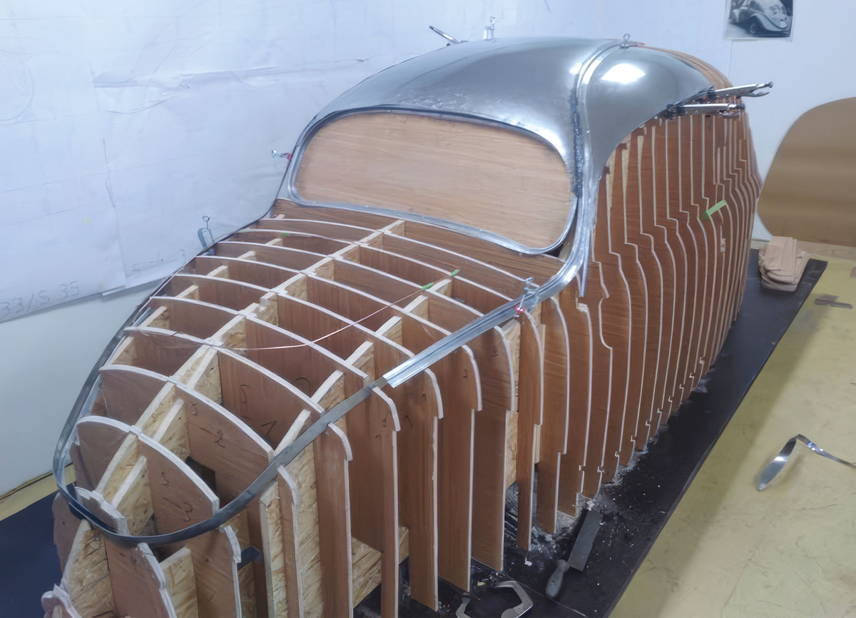 Die Karosserie wurde mit einer Fachfirma von Grund auf neu aufgebaut. Grundlage dafür war eine lebensgroße Zeichnung des Fahrzeugs vom damaligen Audi- und heutigen VW-Chef-Designer Andreas Mindt, die er anhand von Fotos und des Fahrgestells erstellte. «Eine richtige Konstruktionszeichnung war nicht mehr erhalten», erklärt Grundmann.