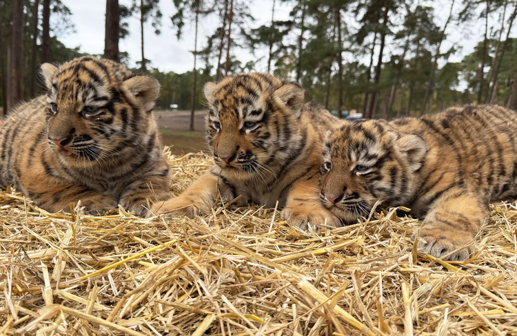 Tigerdame Anastasia hat im Serengeti-Park in Niedersachsen drei kleine Sibirische Tiger zur Welt gebracht. Inzwischen sind die Drillinge gut acht Wochen alt – und entwickeln sich nach Angaben des Parks prächtig. «Anastasia ist eine liebevolle und beschützende Mutter, die ihre Kleinen gut umsorgt», teilte der Freizeitpark in Hodenhagen mit.