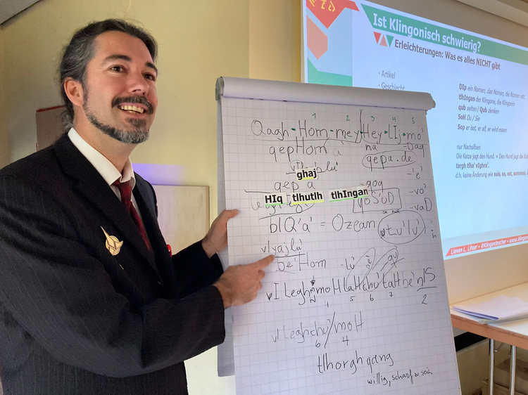 Der Lehrer schätzt, dass weltweit gut 50 Menschen fließend Klingonisch sprechen - eine Sprache mit vielen Zungenbrechern und Kehlkopflauten. Zudem gebe es Tausende Schüler.