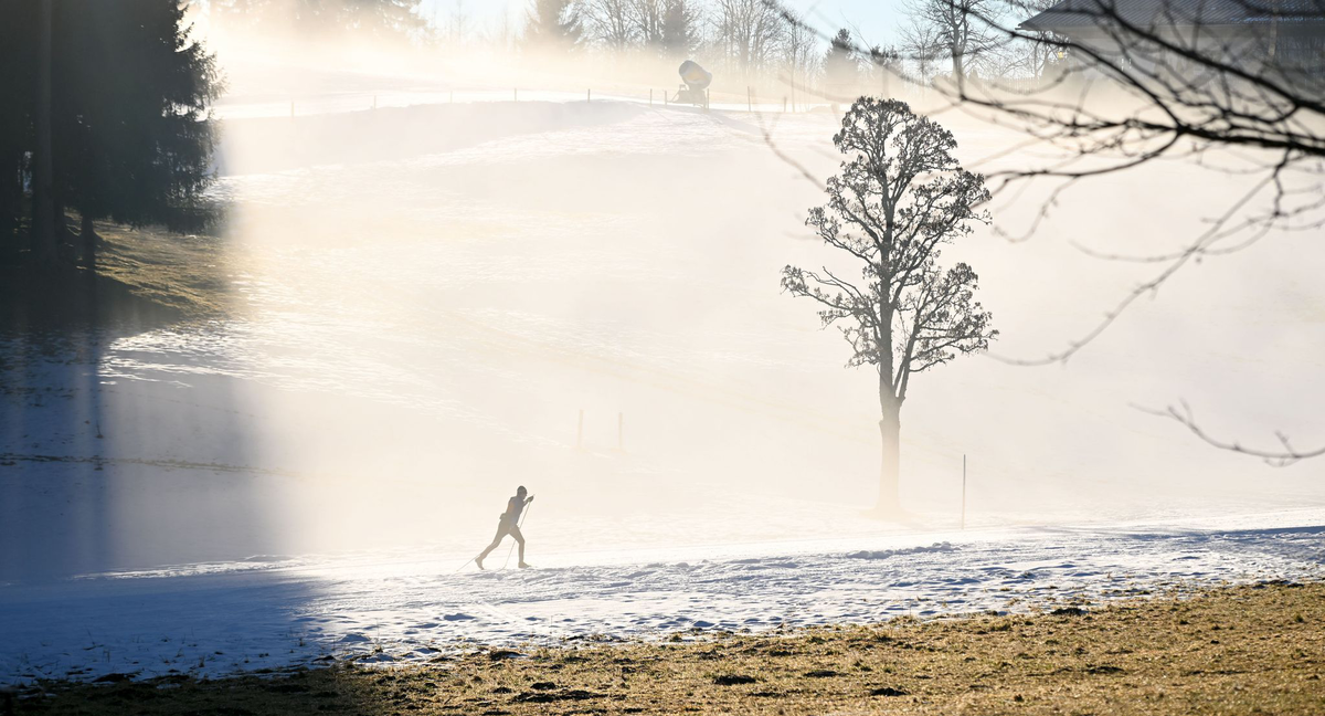 In den vergleichsweise niedrigen bayerischen Alpen zeigt sich das seit einigen Jahren gewohnte vorweihnachtliche Bild: eine dünne Schneedecke in den höheren Lagen oberhalb von 2.000 Metern, ansonsten nur ein paar Schneeflecke. Die meisten Skigebiete liegen unterhalb von 2.000 Metern, doch dank künstlicher Beschneiung sind auch hier viele Pisten an diesem Wochenende trotzdem fahrbar. Die Prognose für Weihnachten ist laut Deutschem Wetterdienst ungewiss - es könnte schneien, muss aber nicht.
