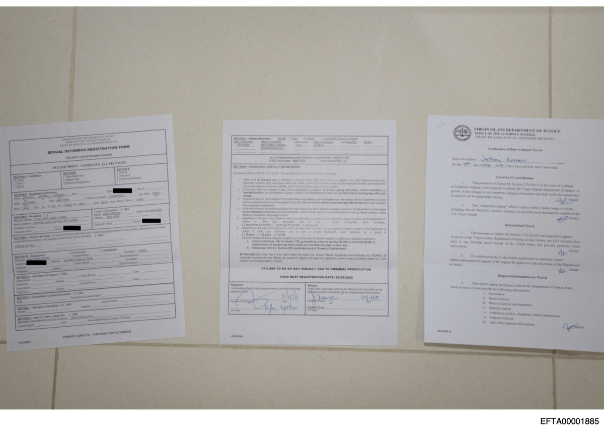Auf der besagten Aufnahme sind zum Teil eingerahmte Fotos zu sehen. Eines der Fotos ist schon älter und zeigt den heutigen US-Präsidenten Donald Trump mit seiner Frau Melania in Begleitung von Epstein und dessen langjähriger Vertrauten Ghislaine Maxwell. Ex-US-Präsident Bill Clinton ist auf einem anderen Bild zu sehen.