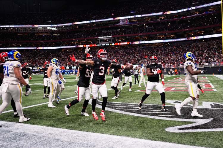 Beinahe hätten die Falcons noch ihre 21:0-Führung zur Pause verspielt. Nach drei Touchdowns in der zweiten Hälfte glichen die Rams knapp drei Minuten vor Spielende aus. Los Angeles' Quarterback Matthew Stafford warf dabei seinen zweiten Touchdown-Pass der Partie. Mit insgesamt 42 Touchdown-Pässen in dieser Saison führt Stafford nicht nur die NFL an, dem 37-Jährigen gelang damit auch ein persönlicher Bestwert seiner 17-jährigen NFL-Karriere.
