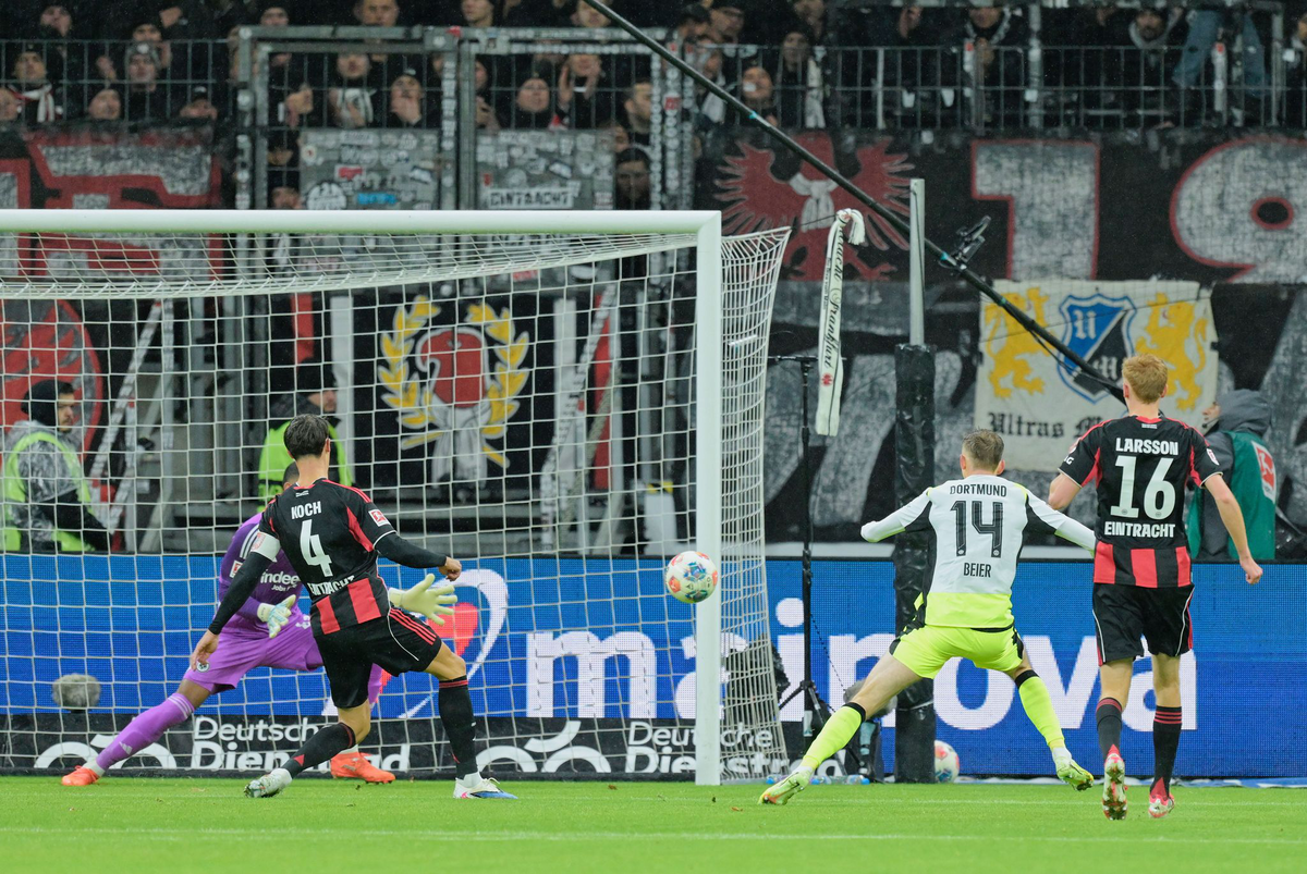 Doch als Kobel erstmals eingreifen musste, hatte der BVB-Angriff bereits geliefert. Auf Vorlage des starken Außenbahnspielers Julian Ryerson vollendete Nationalspieler Beier in der Mitte zur frühen 1:0-Führung - sowohl Assistgeber wie Torschütze wurden von der Eintracht-Defensive alleine gelassen und nutzten dies gnadenlos.