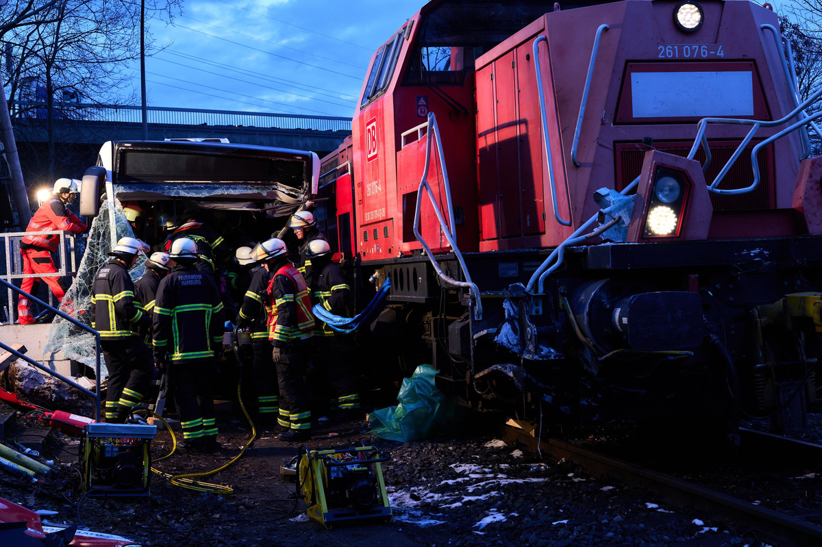Bei dem Zusammenstoß eines Linienbusses mit einer Hafenbahn-Lokomotive in Hamburg ist ein Mensch ums Leben gekommen - mehrere weitere sind verletzt worden. Der Unfall ereignete sich nach Polizeiangaben am Nachmittag an einem unbeschrankten Bahnübergang im Stadtteil Wilhelmsburg. Mehrere Personen in dem Linienbus seien verletzt worden, ein Opfer sei noch am Unfallort gestorben.