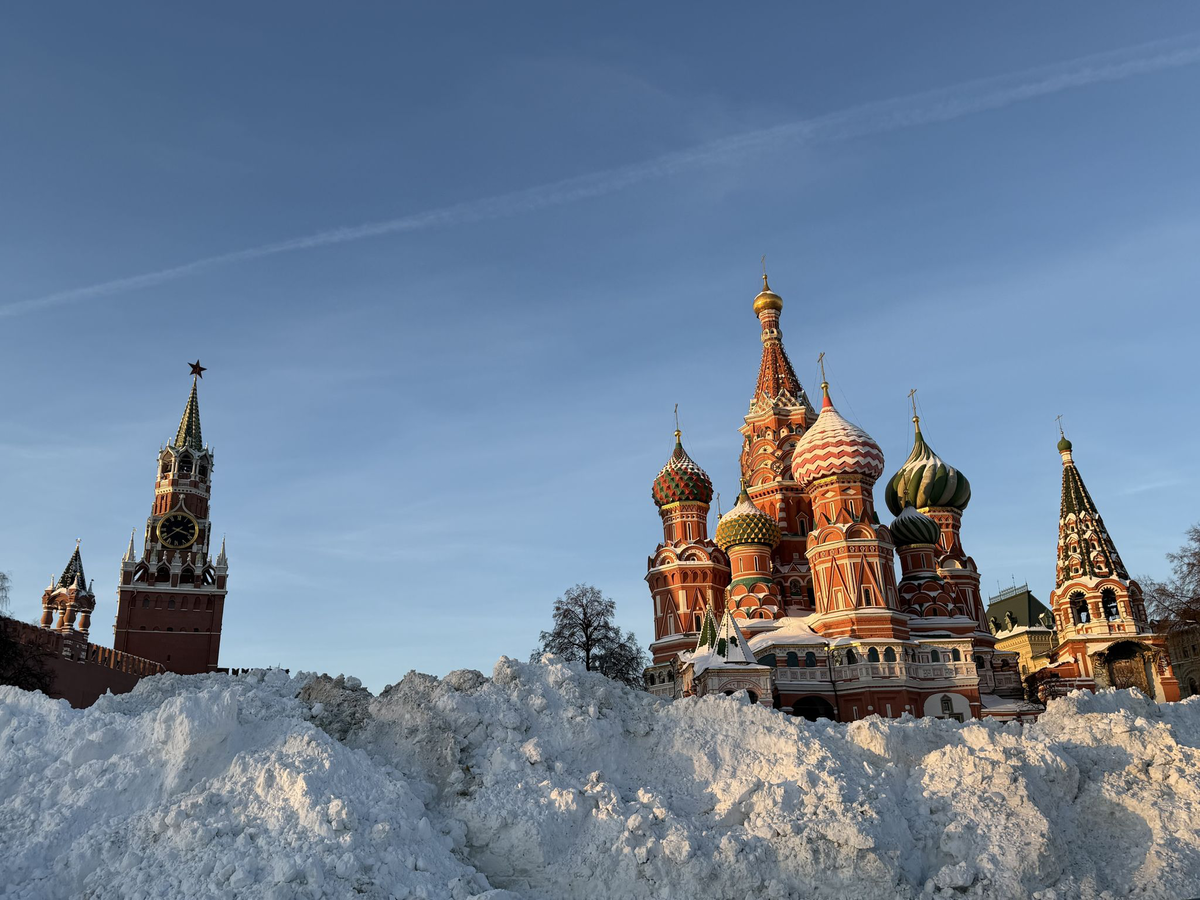 Für die Schneeräumarbeiten auf den Dächern sind ganze Bürgersteige gesperrt. In der Stadt fahren überall Lastwagen, um die Schneemassen an sichere Orte zu transportieren. Sogar am Roten Platz, dem Machtzentrum des Riesenreichs, türmen sich Berge von Schnee an der Kremlmauer und an der Basiliuskathedrale. Der Abtransport lässt auf sich warten.
