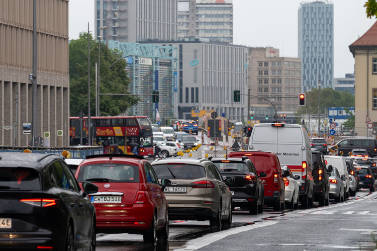 In keiner anderen großen Stadt bremsten Staus den Verkehr im vergangenen Jahr so stark wie in Berlin. Das geht aus Zahlen des Verkehrsdatenspezialisten TomTom hervor. Betrachtet man den weiteren Stadtbereich, floss der Verkehr dort im Schnitt 40 Prozent langsamer, als er das bei freier Fahrt täte. Das zweithöchste Staulevel der 29 untersuchten Städte gibt es in Essen und Hamburg mit je 39 Prozent. Kassel und Karlsruhe am anderen Ende der Skala kommen dagegen nur auf 23 Prozent.