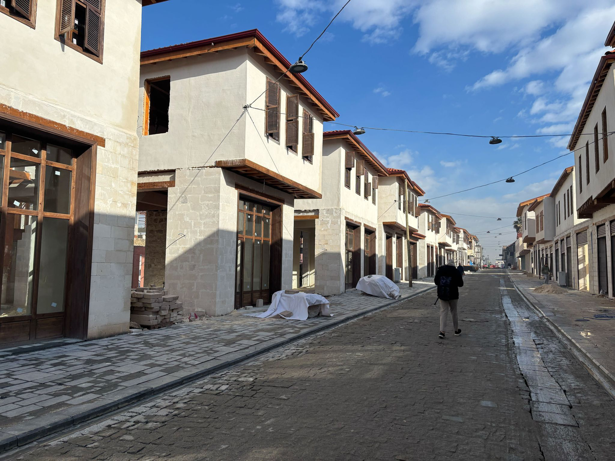 Rund um die Habibi-Neccar Moschee stehen rekonstruierte Häuser aus Stein und Holz. Eine kleine Einkaufsstraße ist fertig. Der Antiquitätenhändler Serkan Sincan sitzt als einziger vor einem Laden, den er erst mal mietfrei nutzen darf. Nach dem Erdbeben erlangte Sincan lokale Bekanntheit, weil er inmitten der Trümmer mit Musik und Optimismus versuchte, seine Landsleute aufzubauen. Noch sind die neuen Geschäfte hier leer und nicht vermietet, nur für Erdogans Besuch wurden die Läden mit Waren bestückt und geöffnet – und dann wieder geschlossen.