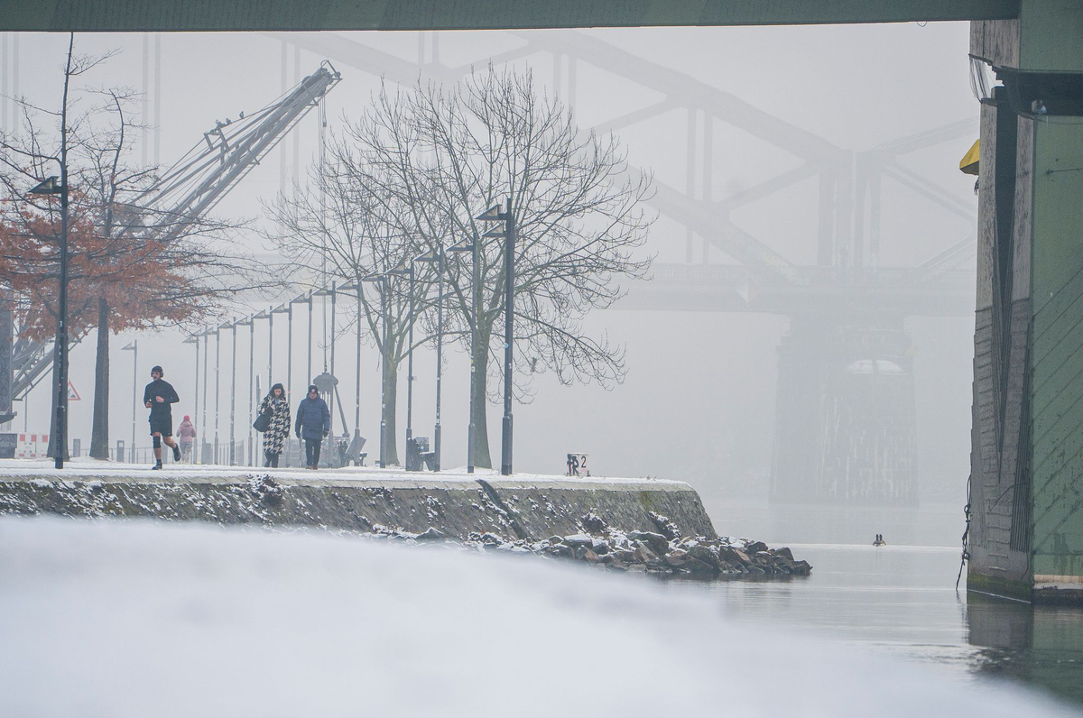 Am Montagmorgen erreicht der Schneefall auch den Nordosten. Dort kommen allerdings laut Prognose meist nur wenige Zentimeter zusammen. Im Südosten sowie später in einem Streifen von der Nordsee bis nach Sachsen kann es zeitweise gefrierenden Regen geben - ebenfalls mit Glättegefahr. Östlich der Elbe herrscht häufig Dauerfrost zwischen minus vier und null Grad.