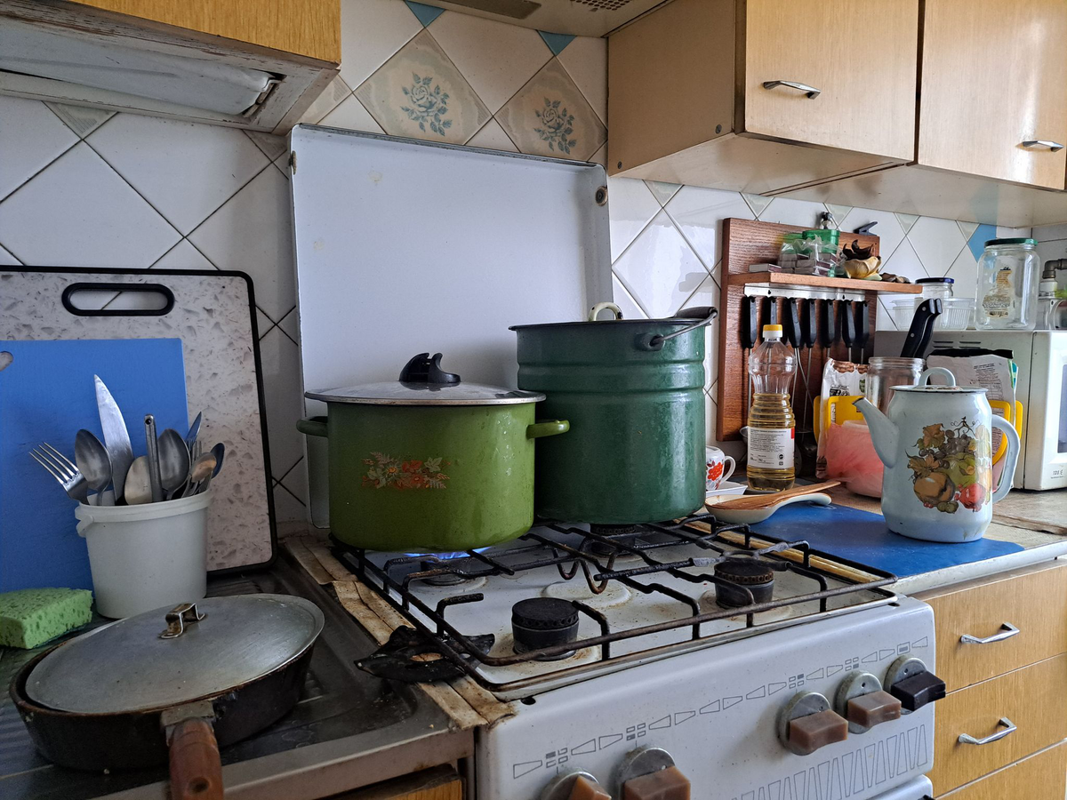 Zum Wärmen steht immer ein kleiner Wassertopf mit Deckel auf einer klein gedrehten Gasflamme. «Gestern hab ich in einem Topf Wasser erhitzt, in einem Eimer gemischt und mich gewaschen», sagt sie.