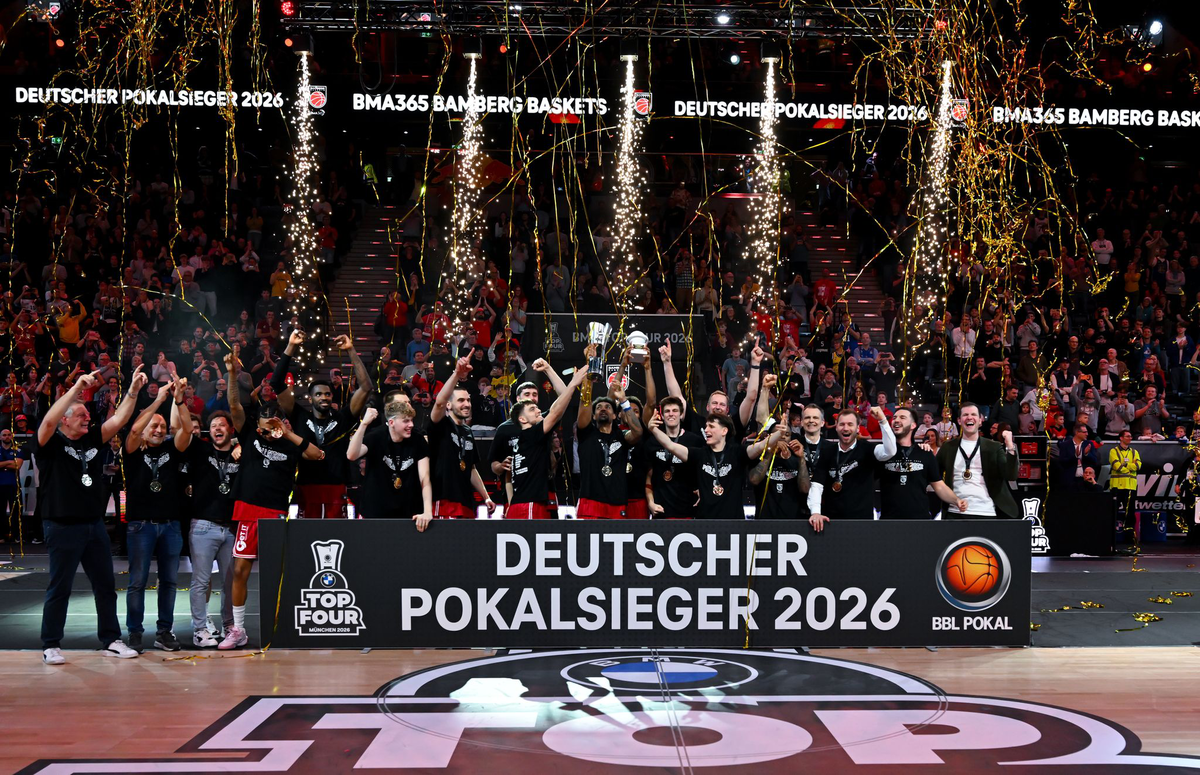 Die BMA365 Bamberg Baskets haben zum siebten Mal den Pokal der Basketball-Bundesliga gewonnen. Die Franken setzten sich in München in einem packenden Finale gegen Alba Berlin mit 74:72 (36:37) durch und holten damit den ersten Titel seit sieben Jahren. «Wir sind überglücklich, dass wir das für die Fans holen konnten. Mir ist egal, wie wir das geschafft haben. Hauptsache wir haben es geschafft», sagte Bambergs Coach Anton Gavel. Der frühere deutsche Nationalspieler hatte bereits als Spieler mit Bamberg den Pokal gewonnen.