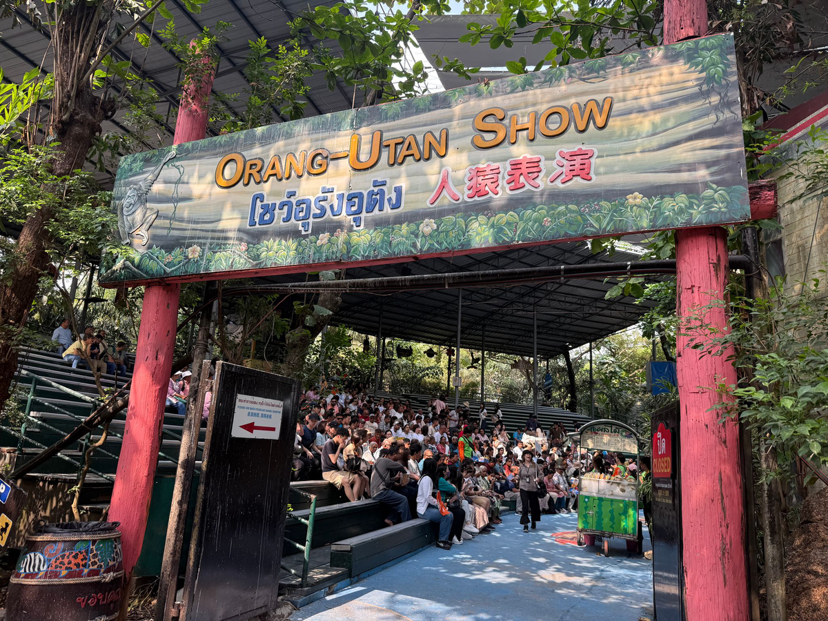 Um zehn Uhr morgens findet nahe Bangkok ein Boxkampf statt. Hunderte Zuschauer drängen sich vor der Bühne, viele haben schon die Handy-Kamera gezückt. Aber in den Ring im thailändischen Vergnügungspark Safari World steigen keine Menschen, sondern zwei Orang-Utans. Die Besucher, darunter viele Kinder, klatschen und lachen.