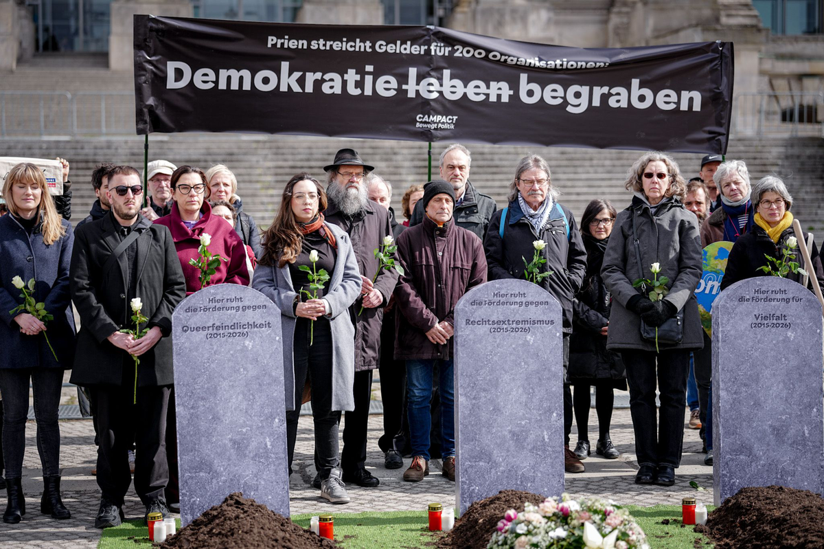 Die Überprüfung der Initiativen bei «Demokratie leben!» ist der Unionsfraktion offenbar wichtig. «Man kann doch nicht gleichzeitig auf der Liste des Verfassungsschutzes und auf der Payroll des Steuerzahlers stehen», sagte die CSU-Politikerin Anja Weisgerber im Bundestag. Die AfD formulierte drastisch, wie sie die geförderten Initiativen sieht: «Linksextremistische Vorfeldorganisationen» nannte sie der Abgeordnete Kay Gottschalk.