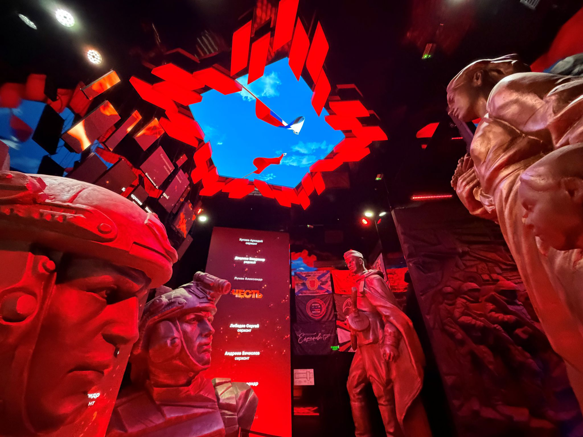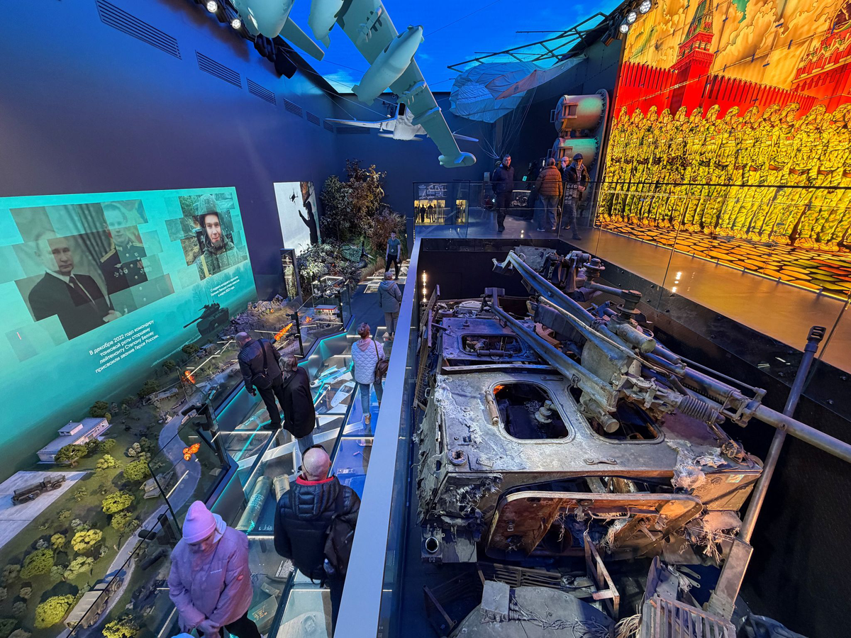 Selbst an diesem sonnigen Frühlingssonntag ist einiges los in der schillernden Schau in Moskau zum Angriffskrieg gegen die Ukraine. Kinder in Gruppen, Familien und Senioren schauen sich Kriegsgerät, nachgestellte Schlachtfeldszenen und Originalaufnahmen von Frontkämpfen an. In dem Pavillon auf dem Ausstellungsgelände WDNCh werden die Soldaten als Helden verehrt. Diese und viele andere solcher Propaganda-Schauen im Land sollen nicht zuletzt Akzeptanz schaffen für die Kriegsheimkehrer – dabei warnen Experten vor möglichen Problemen, die sie mit nach Hause bringen.