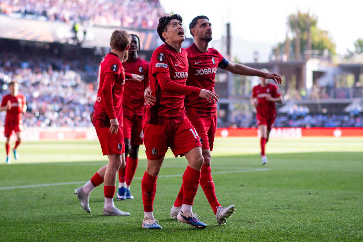 Igor Matanovic (33. Minute) und Yuito Suzuki (39./50.) trafen für die furiosen Freiburger, deren bemerkenswerte Europapokal-Reise weitergeht und womöglich noch bis ins Endspiel am 20. Mai in Istanbul führt. Williot Swedberg konnte in der Nachspielzeit nur noch verkürzen (90.+1). Die erfolgreichste internationale Spielzeit der SC-Historie ist es ohnehin schon. In ein Viertelfinale war der Bundesliga-Achte aus dem Breisgau zuvor noch nie vorgestoßen.