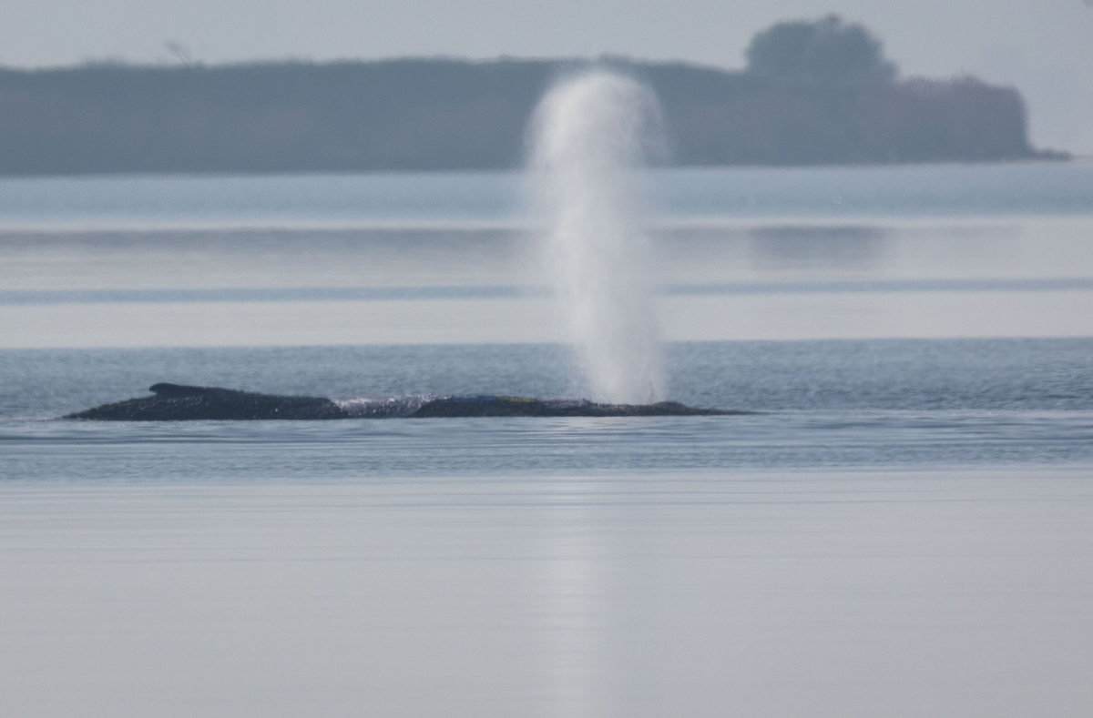 Der geschwächte Wal liegt bereits den 18. Tag an derselben Position in der Kirchsee in der Wismarer Bucht.