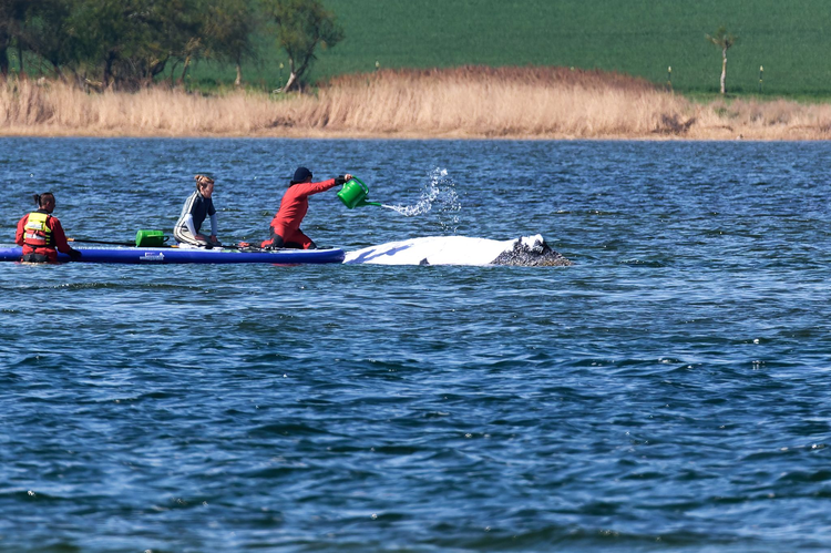 Noch am Abend werde sich die Initiative an die Nacharbeiten setzen - und dann hoffe man auf grünes Licht. Er denke, dass der Wal am Sonntag oder Montag von seinem jetzigen Liegeplatz im flachen Wasser weggeholt werden könne. Das sei auch vom Wetter abhängig, sagte Babbel.