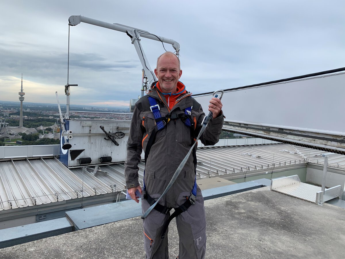 Dafür wird Mike in einem Korb an der Außenfassade des O2 Towers heruntergelassen und muss die 100 Fenster putzen – in einer Höhe von 140 Metern. Und ganz nebenbei: Der O2 Tower ist nicht nur Münchens, sondern auch Bayerns höchstes Bürogebäude...