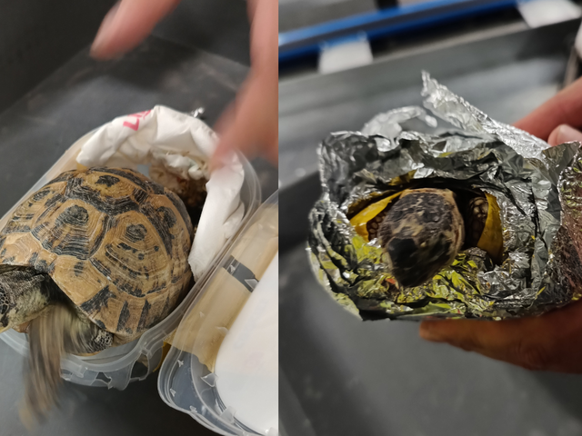 Mann schmuggelt lebendige Schildkröten mit Klebeband