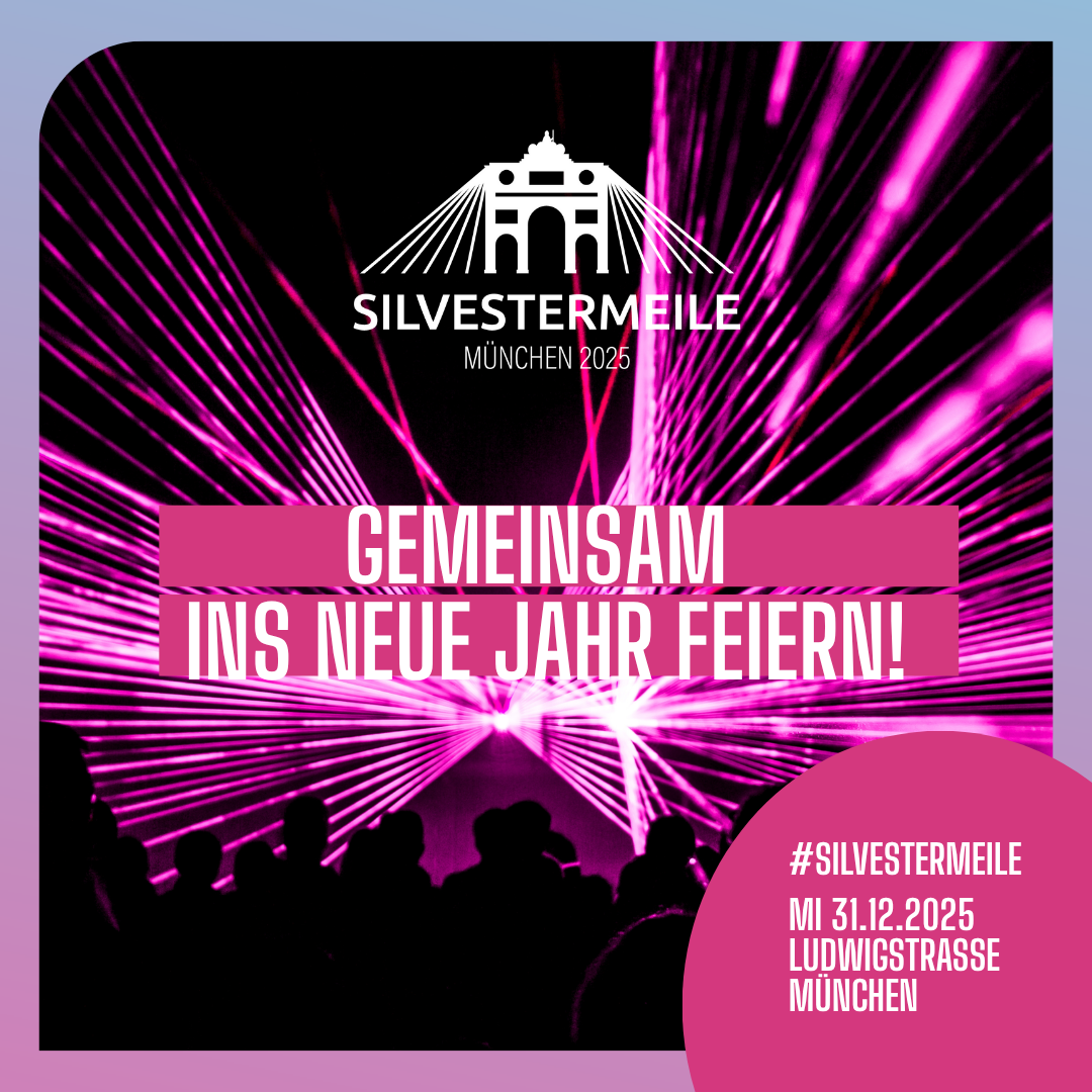 Am 31. Dezember 2025 feiert München auf der Ludwigstraße ab Siegestor von 19 bis 2 Uhr den Jahreswechsel – mit vier Bühnen, Licht- & Videoprojektionen und einem spektakulären Finale aus Licht-, Video- & Lasershow.