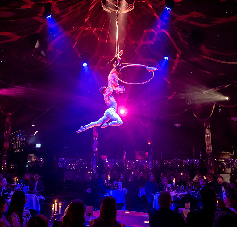 Das teatro verbindet kulinarische Raffinesse mit einem Show-Erlebnis der Extraklasse. Erleben Sie internationale Künstler mit fesselnder Akrobatik, tänzerischer Ausdruckskraft und musikalischer Intensität – abgestimmt auf das stilvolle Ambiente des Spiegelzelts. Jede Szene ist ein visuelles Erlebnis, jeder Akt ein Ausdruck kreativer Exzellenz.