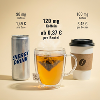 Wir lösen ein Problem, das Millionen Menschen jeden Tag haben: müde sein, aber keinen Bock auf schlechten Kaffee oder überzuckerte Energy-Drinks. Unser Geheimnis ist ein eigens entwickeltes Verfahren, das natürliches Koffein so in die Teeblätter einbindet, dass der Geschmack komplett erhalten bleibt. Klingt simpel, gab's aber vorher schlicht nicht und genau deshalb haben wir eine völlig neue Getränkekategorie geschaffen: Koffeintee. Dazu kommt: kompostierbare Beutel, plastikfreie Verpackung, kontrollierter Anbau. Wachmacher mit gutem Gewissen.