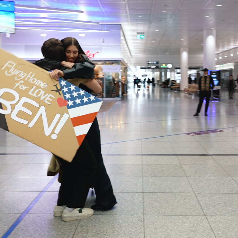 Je nach Route erwartet Euch vielleicht sogar ein komfortables Langstreckenerlebnis mit Lufthansa Allegris: ein innovatives Sitzkonzept, hochwertige Materialien und modernste Technologie an Bord. Ein besonderer Wohlfühlmoment über den Wolken. Und am Flughafen wartet der schönste Augenblick: wenn Ihr Euch endlich wieder in die Arme schließen könnt.